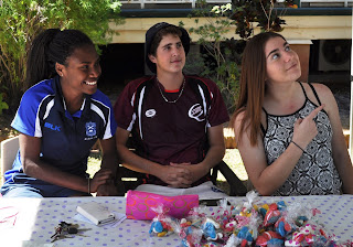 The large crowd that visited the BTC Fair were spoilt with an array of stalls, eateries and competitions. Visits from the Blackhawks Rugby League, Crocodile and The Fire basketball players were a hit with the students. The toad races were still popular with the syndicate of Bacon Bomber Boys taking the prize. Mrs Fairbairn was busy showing visitors the Arrowsmith room while Mr Fairbairn took visitors on tours of the college. Thanks to the P and F, staff and students for making a great Fair.